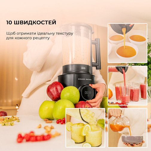 Для точного контролю текстури доступні 10 швидкостей та імпульсний режим Turbo, що дозволяють підлаштувати процес під будь-які потреби. Також передбачено 5 попередньо встановених режимів змішування, які дозволяють отримати ідеальну консистенцію страв одним натиском.
