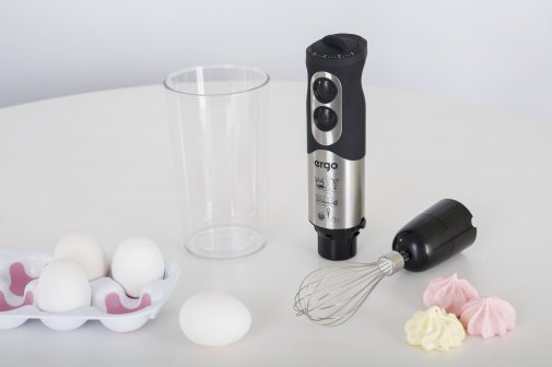 Завдяки занурювальній конструкції та широкому набору насадок, блендер є універсальним помічником для будь-яких кулінарних завдань. Металева насадка дозволяє занурювати пристрій навіть у киплячі страви, наприклад, приготування крем-супів. Вінчик для збивання допоможе створити ніжний омлет, пухкий бісквіт або збити вершки.