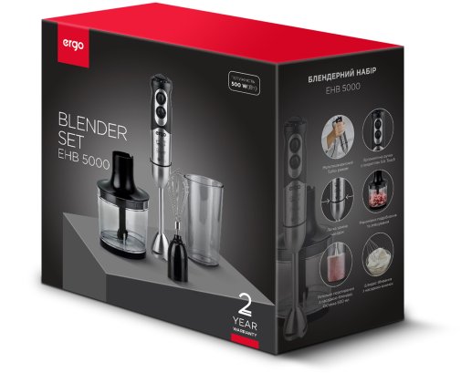 ERGO EHB 5000 — це занурювальний блендер, який перетворює процес приготування їжі на справжнє задоволення. Потужність 500 Вт дозволяє швидко та ефективно подрібнювати, змішувати, збивати або перемелювати різноманітні продукти, економлячи час та зусилля на кухні.