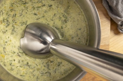 Чотирилезова система ножів створює сильний потік усередині маси, завдяки чому продукти подрібнюються швидше, плавніше та однорідніше. Це особливо корисно для приготування ніжного пюре, кремових супів і повітряних коктейлів.