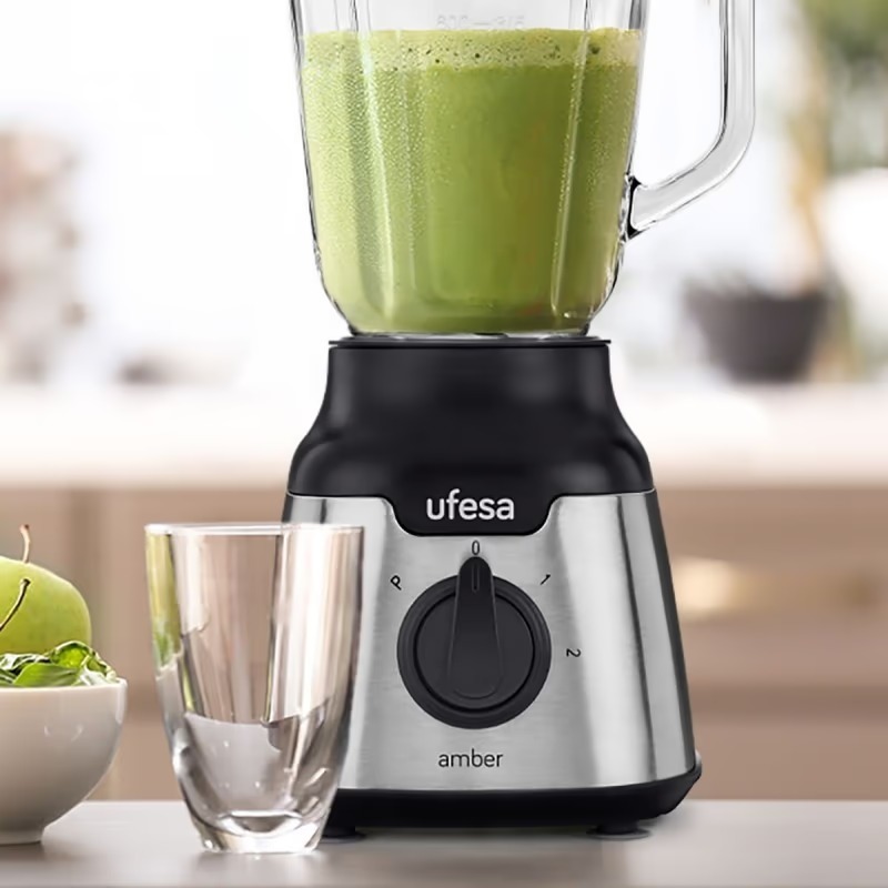 Завдяки чотирьом лезам з нержавіючої сталі Ufesa BS4000 легко справляється з подрібненням інгредієнтів, включно з льодом, забезпечуючи однорідну текстуру без зусиль. Глечик об’ємом 0,8 л легко миється, а компактний розмір блендера дозволяє зручно зберігати його навіть у невеликій кухонній шафі. Це надійний і зручний помічник для щоденного приготування напоїв і страв.