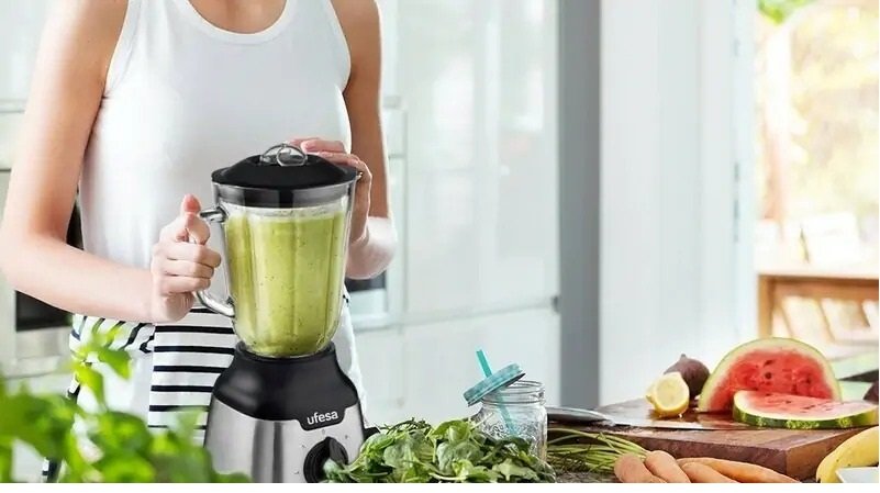 Блендер Ufesa BS4000 — ефективний стаціонарний блендер для приготування смузі, соусів, коктейлів та змішування різних рідин і текстур. Потужність 900 Вт забезпечує оптимальний баланс між енергоспоживанням та високою продуктивністю, а чаша об’ємом 800 мл дозволяє готувати достатню кількість напою чи страви за один раз.