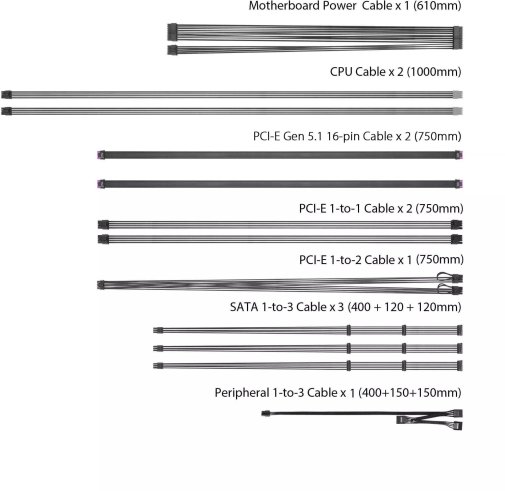 - повна сумісність з ATX 3.1 та PCIe 5.1;