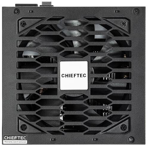 Дизайн блоку живлення виконаний у чорному кольорі з власним стилем Chieftec, габарити становлять 140x150x86 мм. Він використовує активний PFC і підтримує вхідну напругу 100-240V з частотою 50-60 Hz. Охолодження забезпечує 120-мм вентилятор з автоматичним контролем швидкості (AFC), що гарантує тиху роботу.