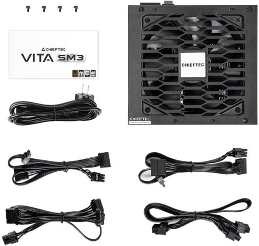 Chieftec 650W VITA SM3 це сучасний блок живлення, що відповідає стандарту Intel ATX 3.1 і підтримує PCIe GEN 5. Цей пристрій сертифікований за стандартом 80 PLUS Bronze, забезпечуючи ефективність роботи. Він має напівмодульну систему керування кабелями, тихий 120-мм вентилятор і елегантний чорний дизайн.
