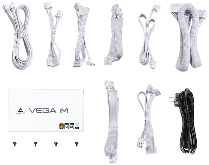 Chieftec 750W Vega M — надійний блок живлення потужністю 750 Вт з високоефективністю стандарту 80 Plus Gold. Серія Vega M оснащена напівмостовим перетворювачем LLC з технологією DC-to-DC для забезпечення підвищеної енергоефективності та стабільності. Має довгі чорні кабелі, тому підійде сучасним геймерам, які зможуть збирати свої системи навіть у великих корпусах ПК.