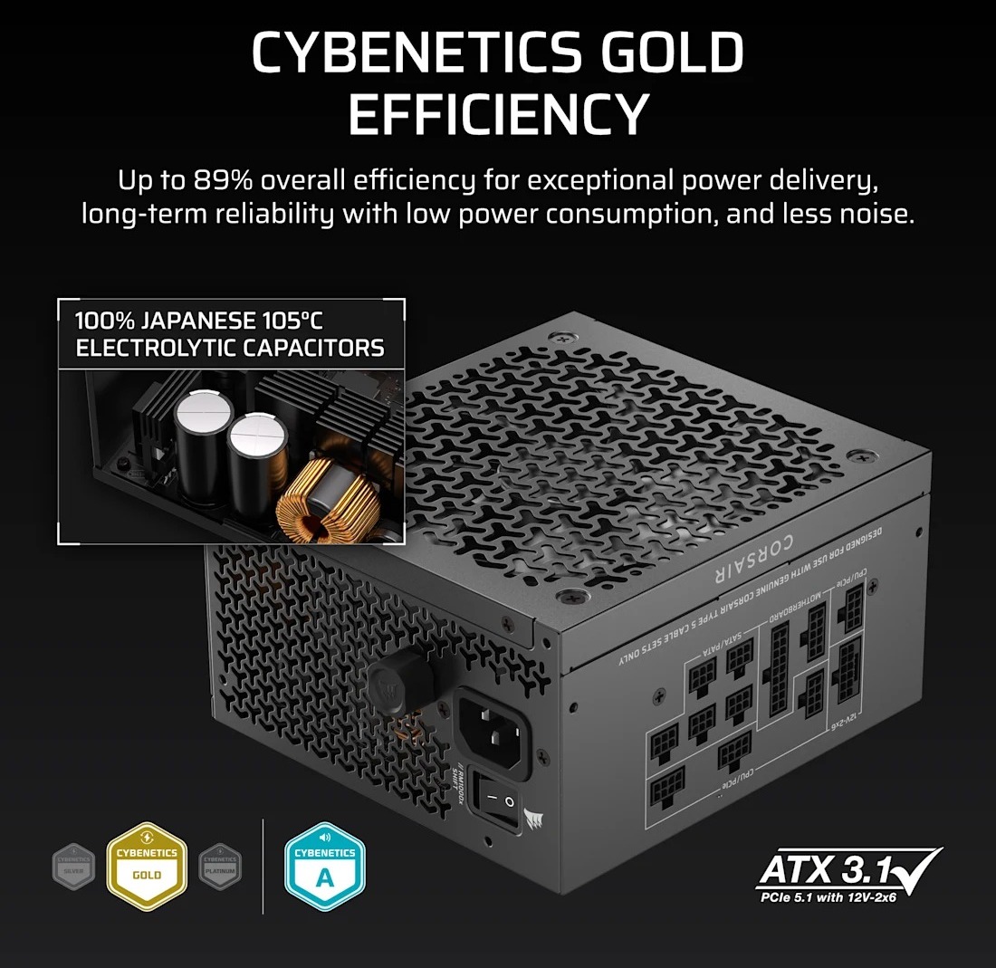 750 Вт на одній лінії +12V, японські конденсатори 105°C, повний захист (OVP, UVP, OPP, SCP, OTP, OCP) і підтримка ATX 3.1 / PCIe 5.1 роблять його готовим до будь-яких сучасних монстрів — від RTX 5090 до мульти-GPU систем.