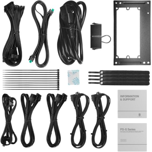 Конструкція виконана у форм-факторі SFX з компактними габаритами, що ідеально підходить для міні-корпусів та SFF-збірок. Підключення модульне, кабелі високоякісні з мідними жилами, спеціальним обплетенням та сертифікацією UL для безпеки. Довжина кабелів зручна для підключення всіх компонентів майбутньої збірки. Особливість — двоколірні гнізда 12V-2x6 для легкої перевірки правильності підключення.