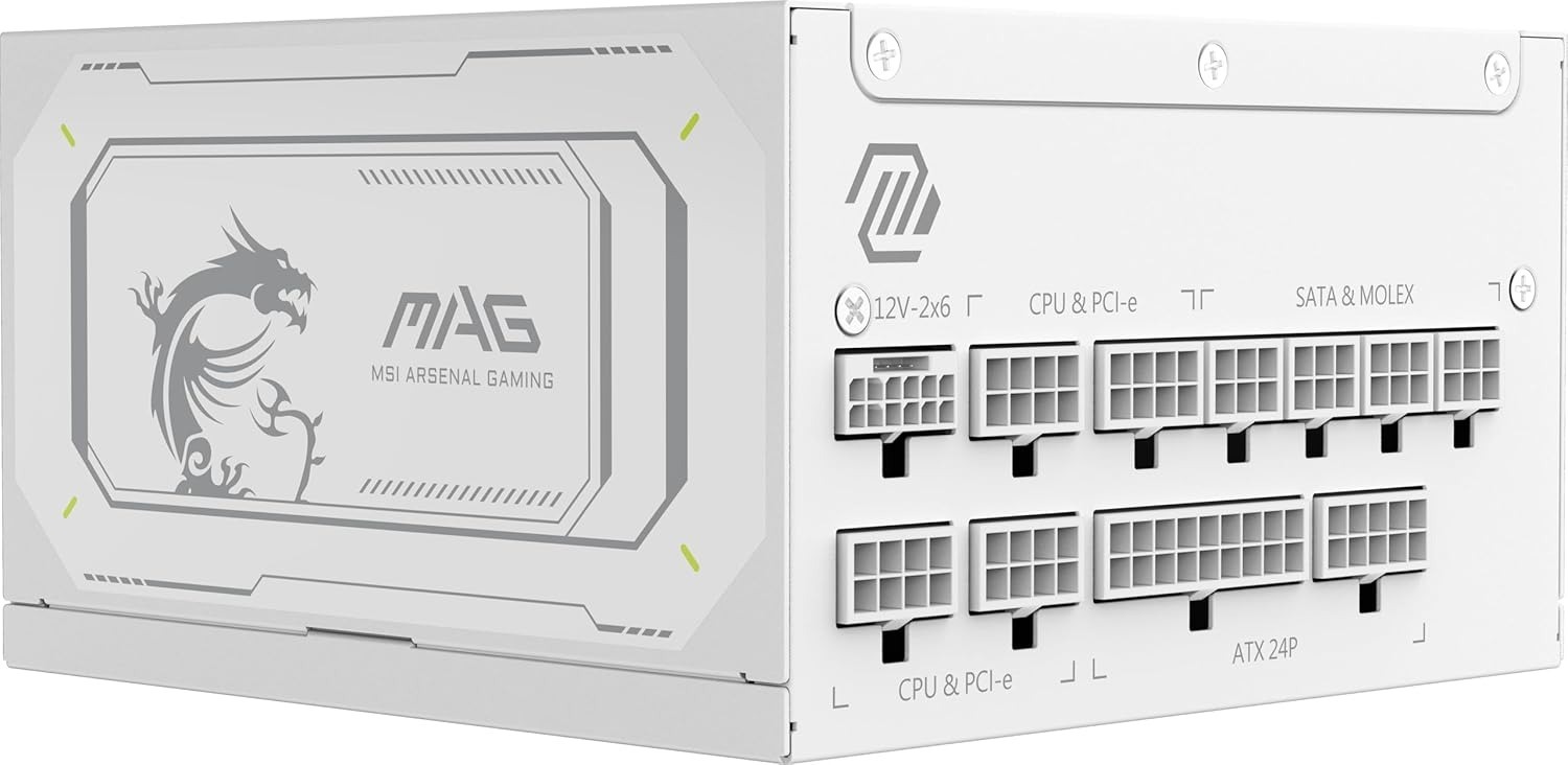 MSI 1000W MAG A1000GL PCIE5 White — блок живлення формфактора ATX з потужністю 1 000 Вт, завдяки чому зможе витримувати значні навантаження, залишатиметься стабільним під час роботи з високопродуктивними відеокартами та іншими компонентами. Сертифікація 80 PLUS Gold обіцяє нижче споживання енергії та вищу ефективність, що безпосередньо впливає на продуктивність системи.
