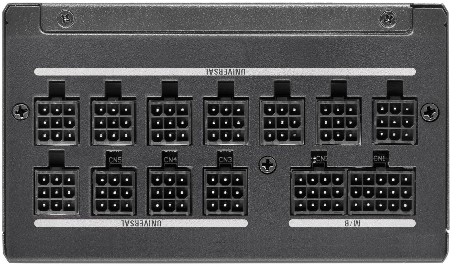 Повністю модульний дизайн з ультрагнучкими стрічковими кабелями та патентованими Universal Super Connectors. Блок живлення має повний набір захисних систем: для захисту від перевантажень, коротких замикань та коливань напруги, перетворюючи хаос електромережі на чисту, стабільну силу, що дозволяє збірці працювати на межі можливостей роками, ніби вічний двигун для цифрових пригод.