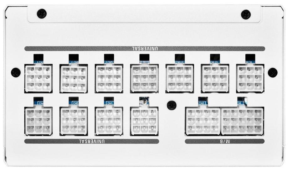 Повністю модульний дизайн з ультрагнучкими стрічковими кабелями та патентованими Universal Super Connectors. Блок живлення має повний набір захисних систем: для захисту від перевантажень, коротких замикань та коливань напруги, перетворюючи хаос електромережі на чисту, стабільну силу, що дозволяє збірці працювати на межі можливостей роками, ніби вічний двигун для цифрових пригод.