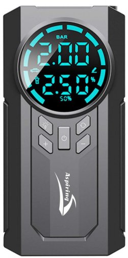 Пускозарядний пристрій Aspiring Jump 2 Power bank 3-in-1 with inflator – це компактний і багатофункціональний інструмент для водіїв, який поєднує бустер, компресор і повербанк. Виготовлений із міцного ABC-пластику, він працює від вбудованої батареї місткістю 8 000 мАг, забезпечуючи автономність до 15 хвилин у температурному діапазоні від -10 до 60 °C.