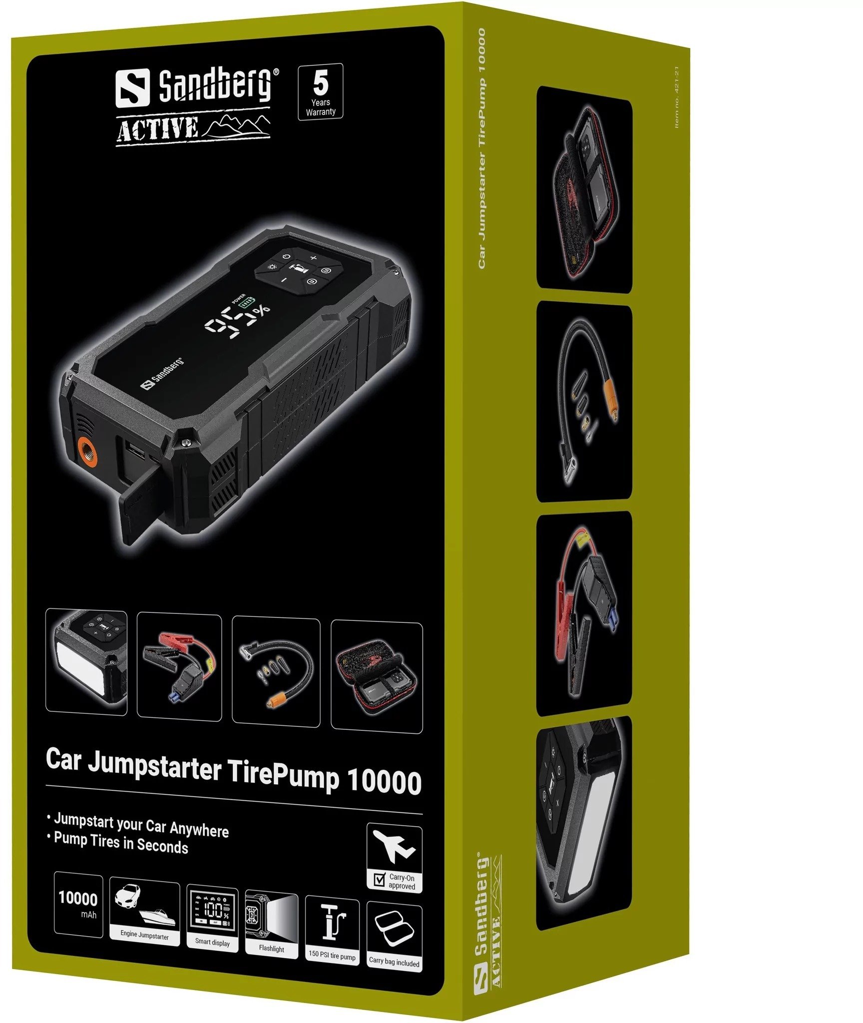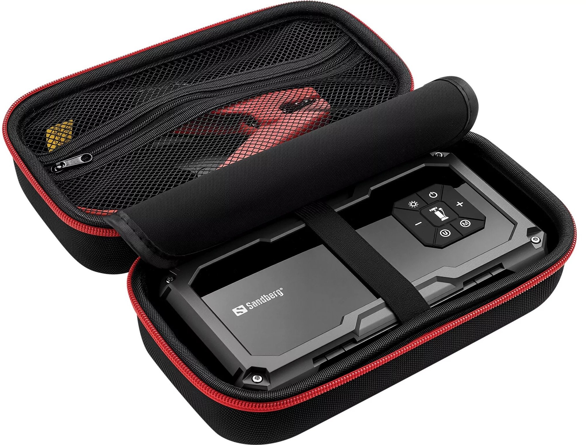 Sandberg Car Jumpstarter TirePump - це стратегічне рішення для автомобільного резерву, де 10000 мАг поєднуються з пусковим струмом 400 А, компресором 150 PSI та ліхтарем, перетворюючи обмеження дороги на незалежний ресурс для стабільної безпеки в динамічному середовищі з довготривалою впевненістю.