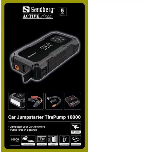 Sandberg Car Jumpstarter TirePump 10000 є компактним і багатозадачним портативним помічником для автомобілістів та мандрівників, перетворюючи потенційну поломку чи розряд на стабільний ресурс для запуску двигуна, накачування шин чи живлення ґаджетів без компромісів у мобільності чи надійності.