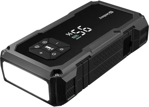Ця модель у стриманому чорному кольорі з матовим покриттям з PC + ABS базується на літій-іонному акумуляторі місткістю 10000 мАг (37 Вт·год), що гарантує до 1000 циклів зарядки з ресурсом на кілька запусків двигуна чи повних зарядів USB-пристроїв, з номінальним струмом 400 А (пік 800 А) для надійного пуску 12 В автомобілів до 6 л, перетворюючи обмежений доступ до допомоги на безтурботний процес для екстрених ситуацій на дорозі чи в подорожі. Підтримка компресора тиском до 150 PSI з продуктивністю 23 л/хв забезпечує швидке накачування шин автомобілів чи велосипедів, з автоматичним відключенням для запобігання перекачуванню, роблячи її незамінним інструментом для тих, хто цінує універсальність без зайвих пристроїв.