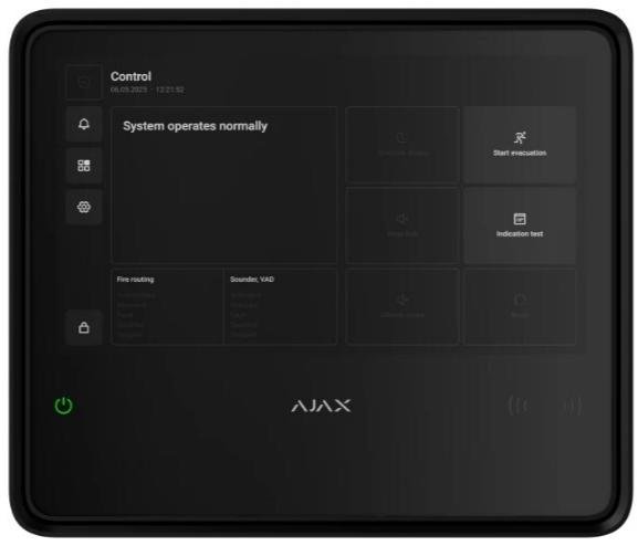 Пристрій працює під управлінням OS Malevich, захищеної від вірусів і кібератак, із підтримкою дистанційного оновлення. Використовує чотири канали зв’язку (Wi-Fi, Ethernet, дві micro-SIM) для підключення до Ajax Cloud, автоматично перемикаючись між каналами у разі втрати зв’язку. Радіопротоколи Jeweller і Wings забезпечують зв’язок із пристроями Ajax на відстані до 1800 м без перешкод. У разі спрацювання датчика система активує тривогу за 3 секунди, запускає сирени, сценарії, сповіщає ПЦС (формати SurGard, SIA, ADEMCO 685) і користувачів через застосунок Ajax PRO Desktop.