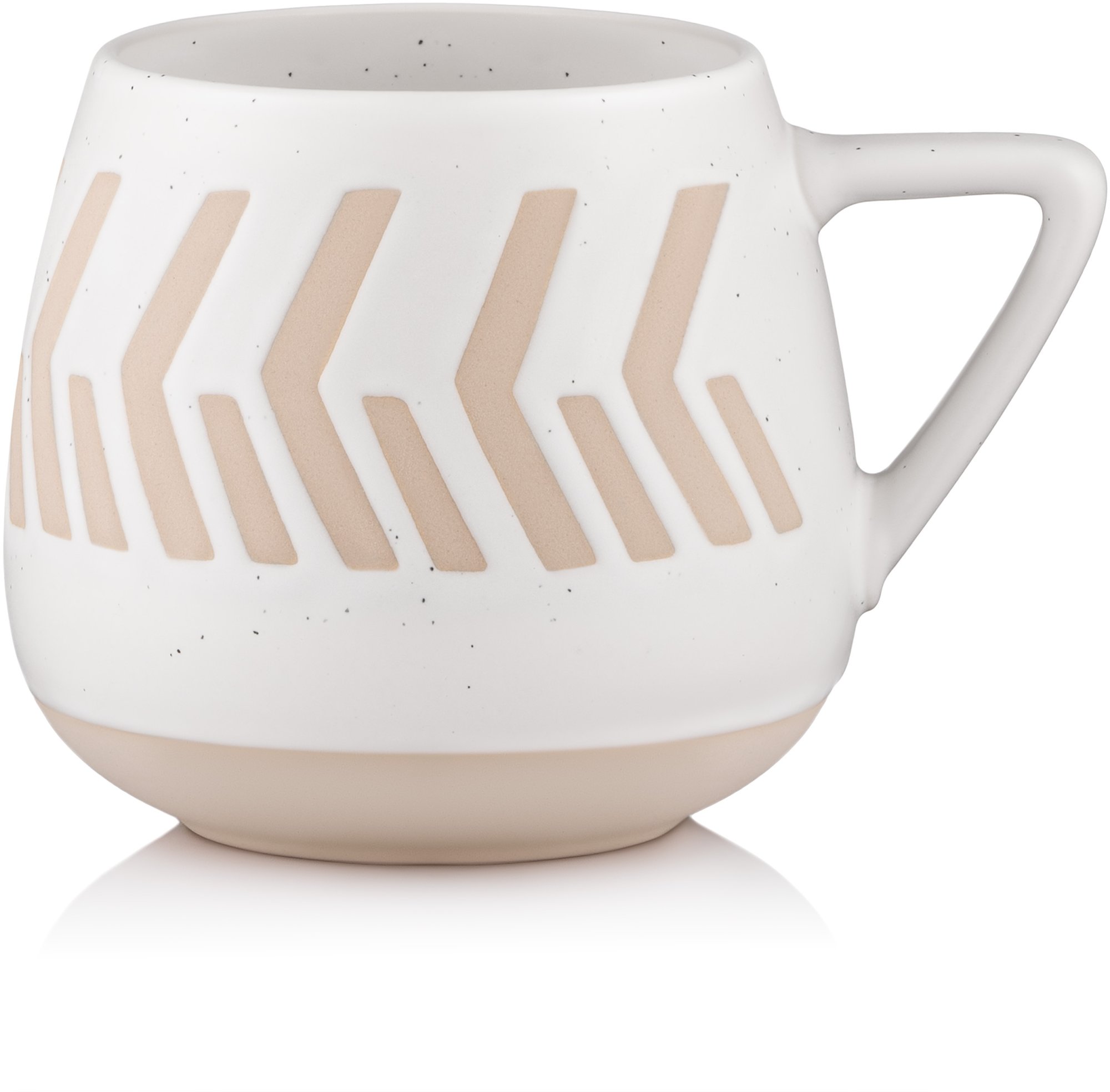 Чашка ARDESTO серії Auro об’ємом 440 мл – ліпший вибір як для ранкових ритуалів, так і для затишних вечорів із улюбленим напоєм. Виріб виготовлено з кераміки – екологічного, міцного та довговічного матеріалу, який забезпечить тривалий термін слугування. Крім того, кераміка довго зберігає напій гарячим і не вбирає запахів. Дизайн у білому кольорі з графічним візерунком бежевого відтінку додає естетичної привабливості. Виріб можна використовувати в мікрохвильовій печі та мити в посудомийній машині. Ця стильна чашка буде вдалим подарунком для близьких і друзів.