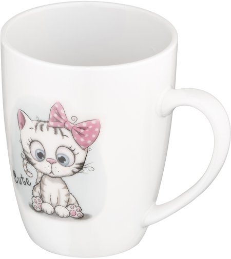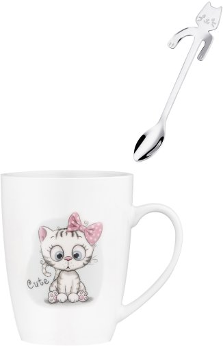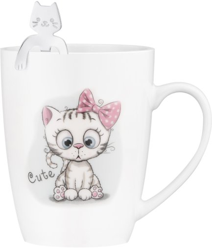 Чашку ARDESTO Cute об’ємом 320 мл виготовлено з якісної порцеляни й доповнено ложкою з нержавіючої сталі. Основний колір – білий, а миле зображення підкреслює непересічний дизайн. Виріб має універсальний розмір – верхній діаметр 8,3 см за висоти 10,5 см, що зумовлює зручність за щоденного використання. Придатна до миття в посудомийній машині та використання в мікрохвильовій печі.