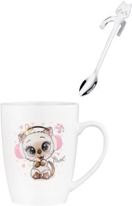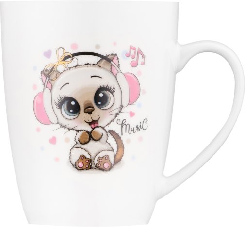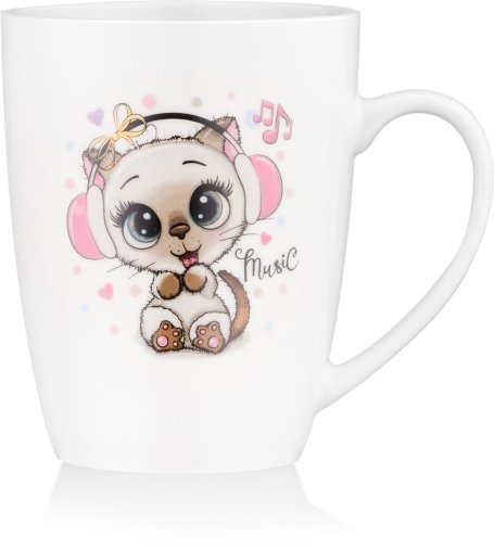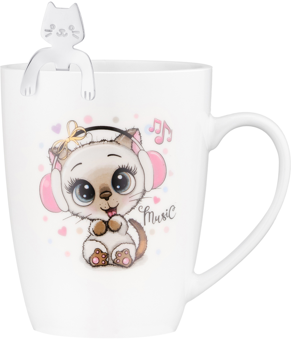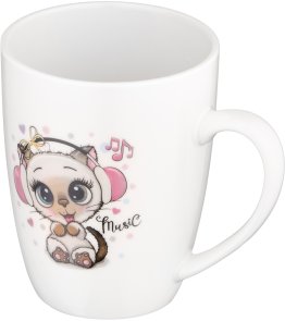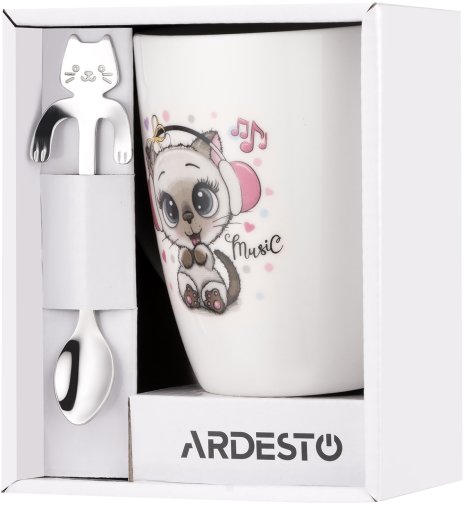 Чашку ARDESTO Music об’ємом 320 мл виготовлено з якісної порцеляни й доповнено ложкою з нержавіючої сталі. Основний колір – білий, а миле зображення підкреслює непересічний дизайн. Виріб має універсальний розмір – верхній діаметр 8,3 см за висоти 10,5 см, що зумовлює зручність за щоденного використання. Придатна до миття в посудомийній машині та використання в мікрохвильовій печі.