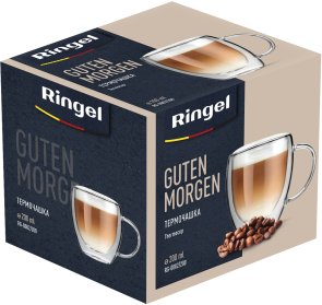 Конструкція чашки з подвійними стінками дозволяє зовнішнім стінкам не нагріватися. І ви можете брати склянку Guten Morgen від RINGEL без побоювань обпектися з гарячим напоєм відразу.