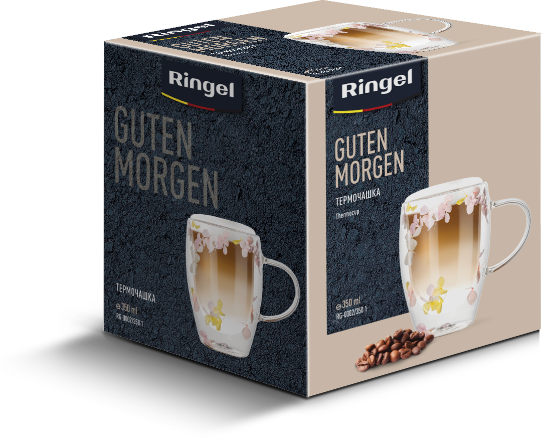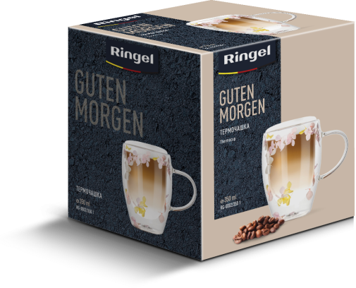 Конструкція чашки з подвійними стінками дозволяє не нагріватися зовнішнім стінкам. І ви можете без страху обпектися брати склянку Guten Morgen від RINGEL з гарячим напоєм відразу.