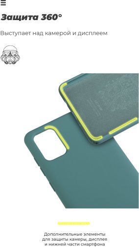 Накладка легко надівається на смартфон завдяки розтягувальним бортикам, які також додатково захищають, виступаючи над поверхнею дисплея й камери. В чохлі передбачені всі необхідні вирізи та кнопки. Він сумісний з усіма типами захисних стекол.