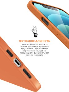 При виготовленні чохла використовувалися преміальні матеріали – Liquid silicone, з Soft Touch покриттям. М'яка підкладка з преміальної мікрофібри надійно захистить ваш гаджет від подряпин, бруду та пилу. Чохол має ребра жорсткості, таким чином телефон захищений з усіх боків. Додатковою перевагою є наявність виступаючих бортів над дисплеєм та наявність додаткової пластикової рамки над задньою камерою для додаткового захисту. У панелі передбачені всі необхідні вирізи та кнопки. Також аксесуар не заважає використанню портів та інтерфейсів пристрою.