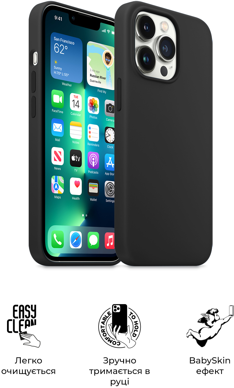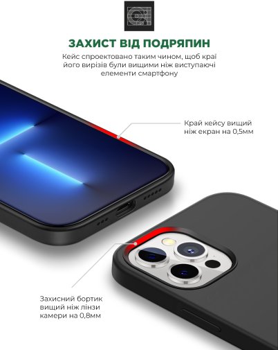 • Преміальні матеріали чохла – Liquid silicone, з Soft Touch покриттям;