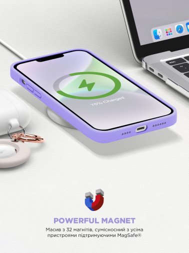 Функція MagSafe Інтегрована функція MagSafe дозволяє вам використовувати різноманітні аксесуари, які підтримують цю технологію, без необхідності використовувати додаткові кріплення. Це робить чохол ще більш універсальним і зручним у використанні.