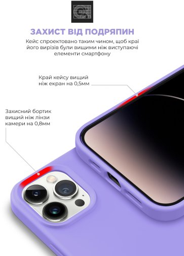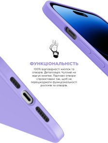 При виготовленні чохла використовувалися преміальні матеріали – Liquid silicone, з Soft Touch покриттям. М'яка підкладка з преміальної мікрофібри надійно захистить ваш гаджет від подряпин, бруду та пилу. Чохол має ребра жорсткості, таким чином телефон захищений з усіх боків. Додатковою перевагою є наявність виступаючих бортів над дисплеєм та наявність додаткової пластикової рамки над задньою камерою для додаткового захисту. У панелі передбачені всі необхідні вирізи та кнопки. Також аксесуар не заважає використанню портів та інтерфейсів пристрою.
