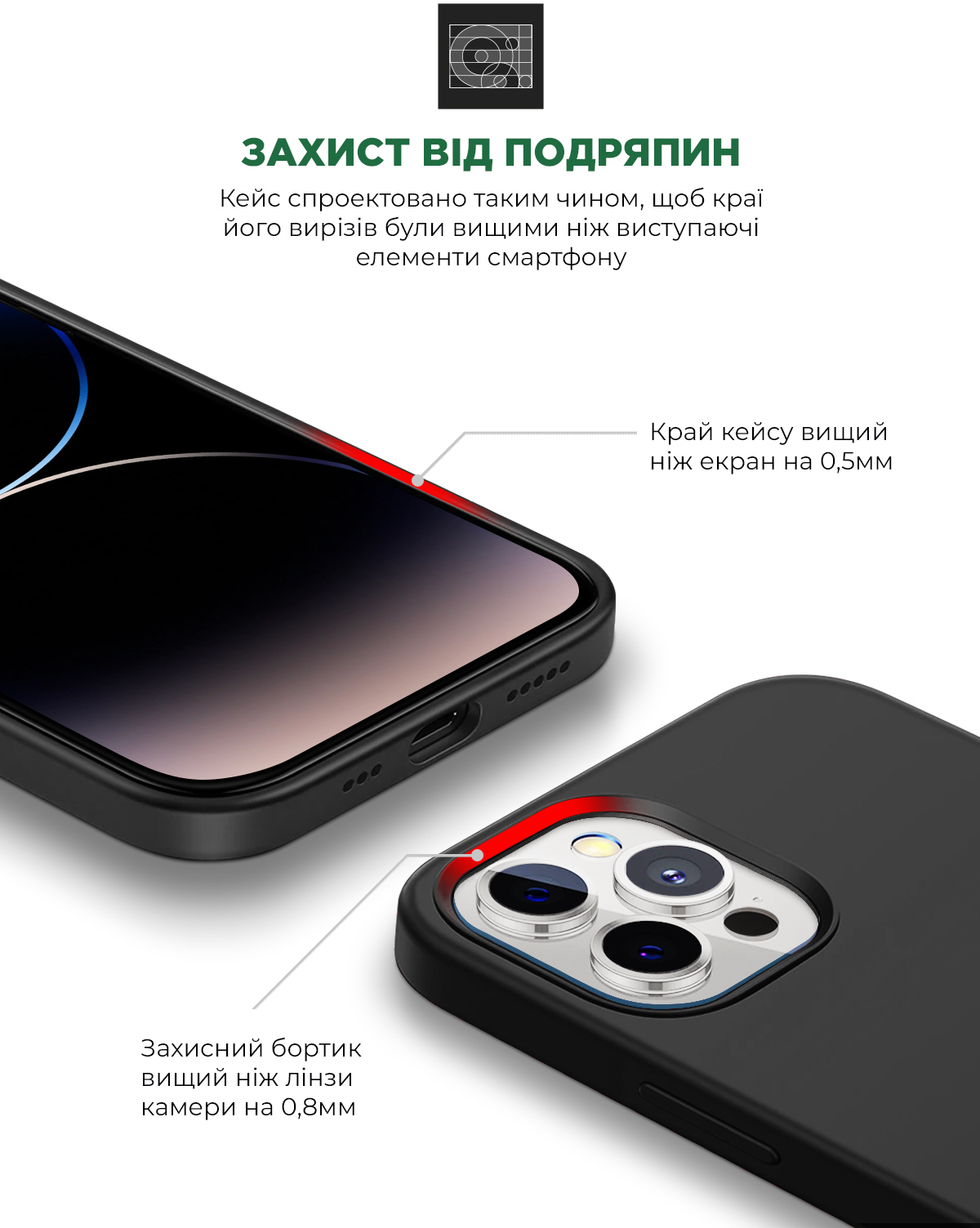 • Преміальні матеріали чохла – Liquid silicone, з Soft Touch покриттям;
