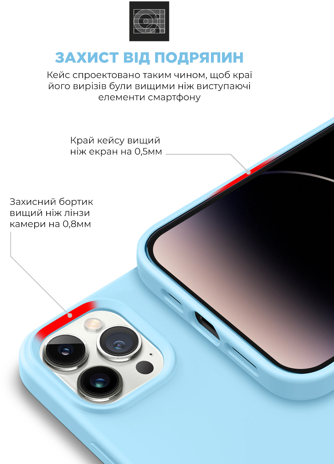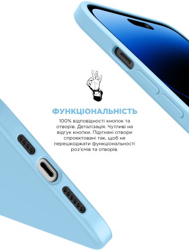 • Преміальні матеріали чохла – Liquid silicone, з Soft Touch покриттям;