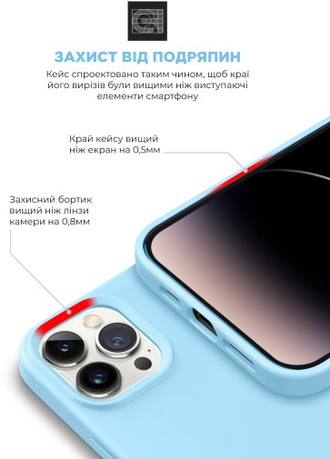 Високоякісні матеріали: При виготовленні чохла використовувалися преміальні матеріали – Liquid silicone, з Soft Touch покриттям. М'яка підкладка з преміальної мікрофібри надійно захистить ваш гаджет від подряпин, бруду та пилу. Чохол має ребра жорсткості, таким чином телефон захищений з усіх боків. Додатковою перевагою є наявність виступаючих бортів над дисплеєм та наявність додаткової пластикової рамки над задньою камерою для додаткового захисту. У панелі передбачені всі необхідні вирізи та кнопки. Також аксесуар не заважає використанню портів та інтерфейсів пристрою.