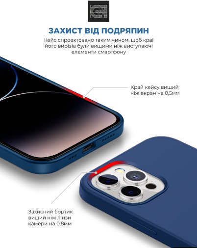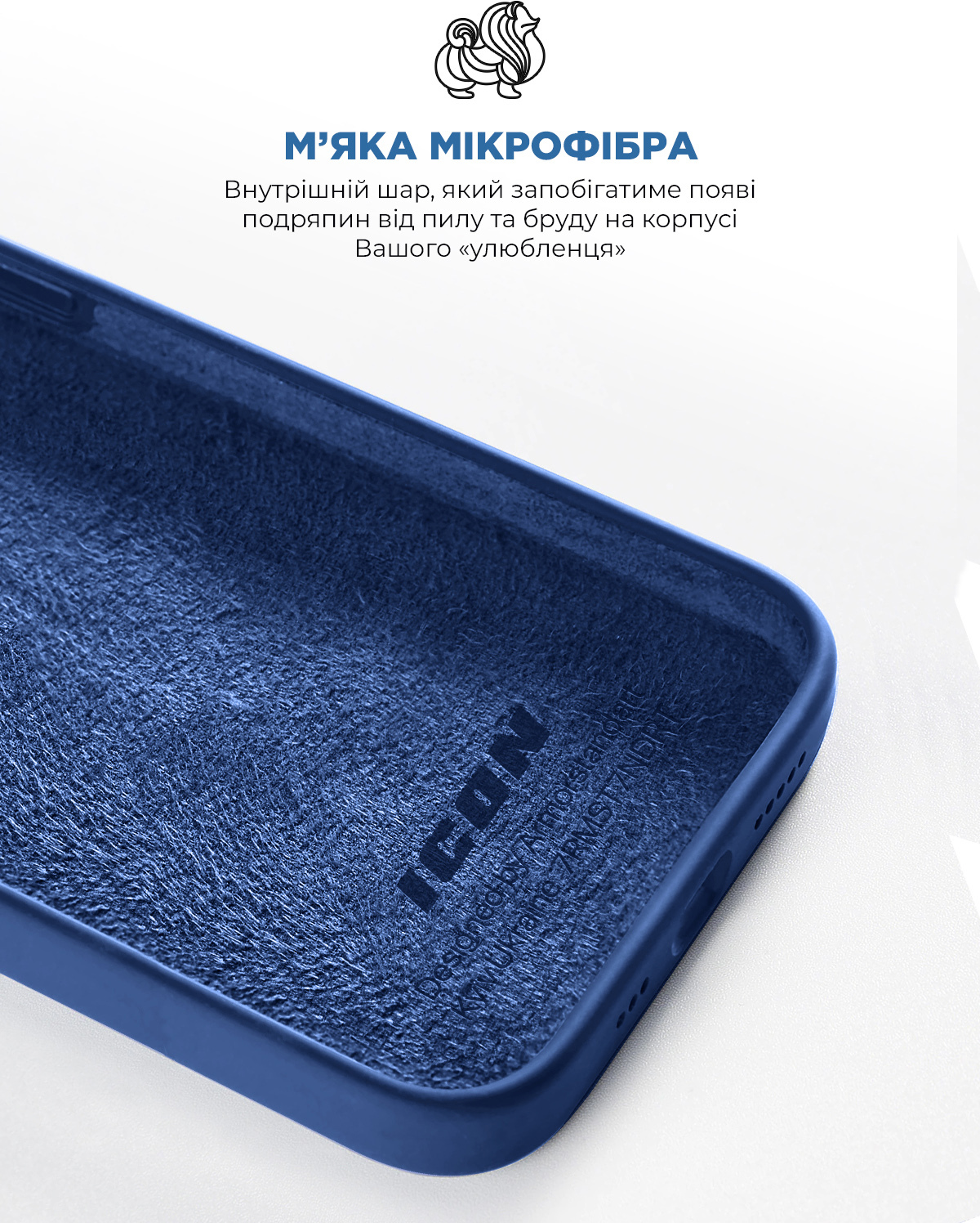 • Преміальні матеріали чохла – Liquid silicone, з Soft Touch покриттям;