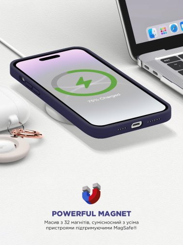 Функція MagSafe Інтегрована функція MagSafe дозволяє вам використовувати різноманітні аксесуари, які підтримують цю технологію, без необхідності використовувати додаткові кріплення. Це робить чохол ще більш універсальним і зручним у використанні.