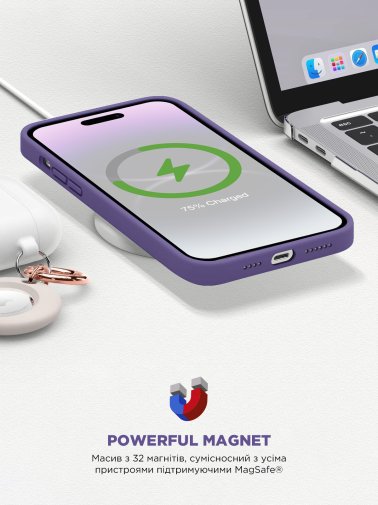Функція MagSafe Інтегрована функція MagSafe дозволяє вам використовувати різноманітні аксесуари, які підтримують цю технологію, без необхідності використовувати додаткові кріплення. Це робить чохол ще більш універсальним і зручним у використанні.