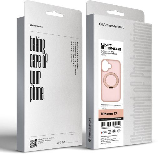 ArmorStandart Unit Stand2 — захисний чохол для Apple iPhone з вбудованою поворотною підставкою та магнітною сумісністю. Модель розрахована на щоденну експлуатацію, де важливі стабільне утримання смартфона, можливість фіксації під кутом і збереження повної функціональності пристрою.