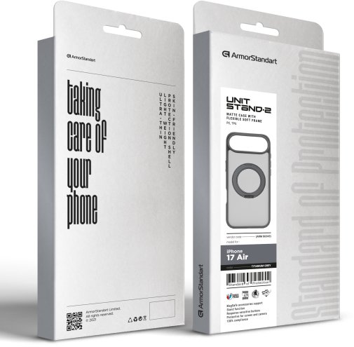 ArmorStandart Unit Stand2 — захисний чохол для Apple iPhone з вбудованою поворотною підставкою та магнітною сумісністю. Модель розрахована на щоденну експлуатацію, де важливі стабільне утримання смартфона, можливість фіксації під кутом і збереження повної функціональності пристрою.