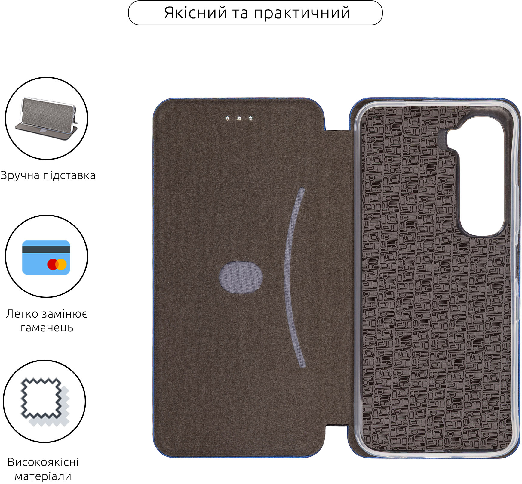Тип чохла: КнижкаМатеріал корпусу: Поліуретан, Штучна шкіраОсновний колір: Синій
