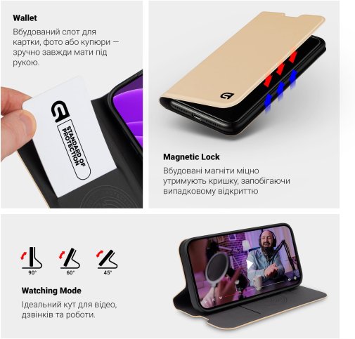 - Вбудовані магніти для зручного відкривання/закривання чохла