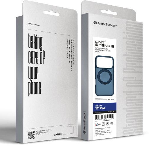 ArmorStandart Unit Stand2 — захисний чохол для Apple iPhone з вбудованою поворотною підставкою та магнітною сумісністю. Модель розрахована на щоденну експлуатацію, де важливі стабільне утримання смартфона, можливість фіксації під кутом і збереження повної функціональності пристрою.
