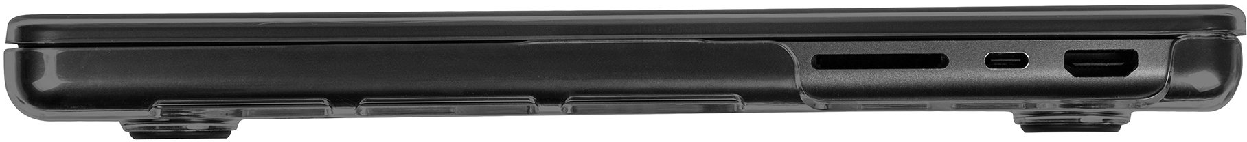 Crystal для MacBook – це накладка преміум-класу, створена для тих, хто прагне поєднати надійний захист ноутбука з витриманим і сучасним виглядом. Вона виготовлена з високоякісного полікарбонату (PC), що вирізняється стійкістю до подряпин, тріщин та механічних навантажень. Такий матеріал забезпечує надійну довготривалу експлуатацію та захищає ваш MacBook від пошкоджень під час щоденного використання чи транспортування.