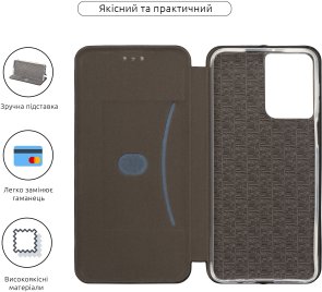 Тип чохла: КнижкаМатеріал корпусу: Силікон, Штучна шкіраОсновний колір: Чорний