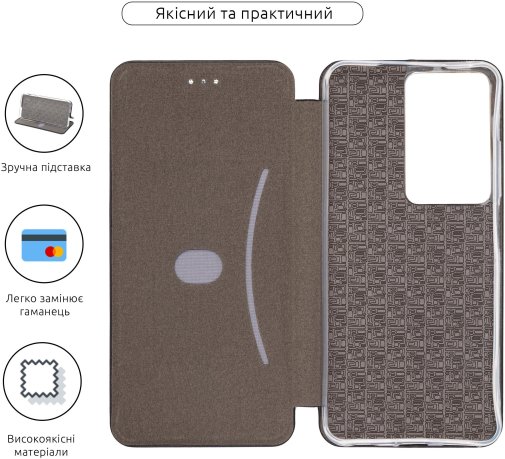 Тип чохла: КнижкаМатеріал корпусу: Поліуретан, Штучна шкіраОсновний колір: Чорний