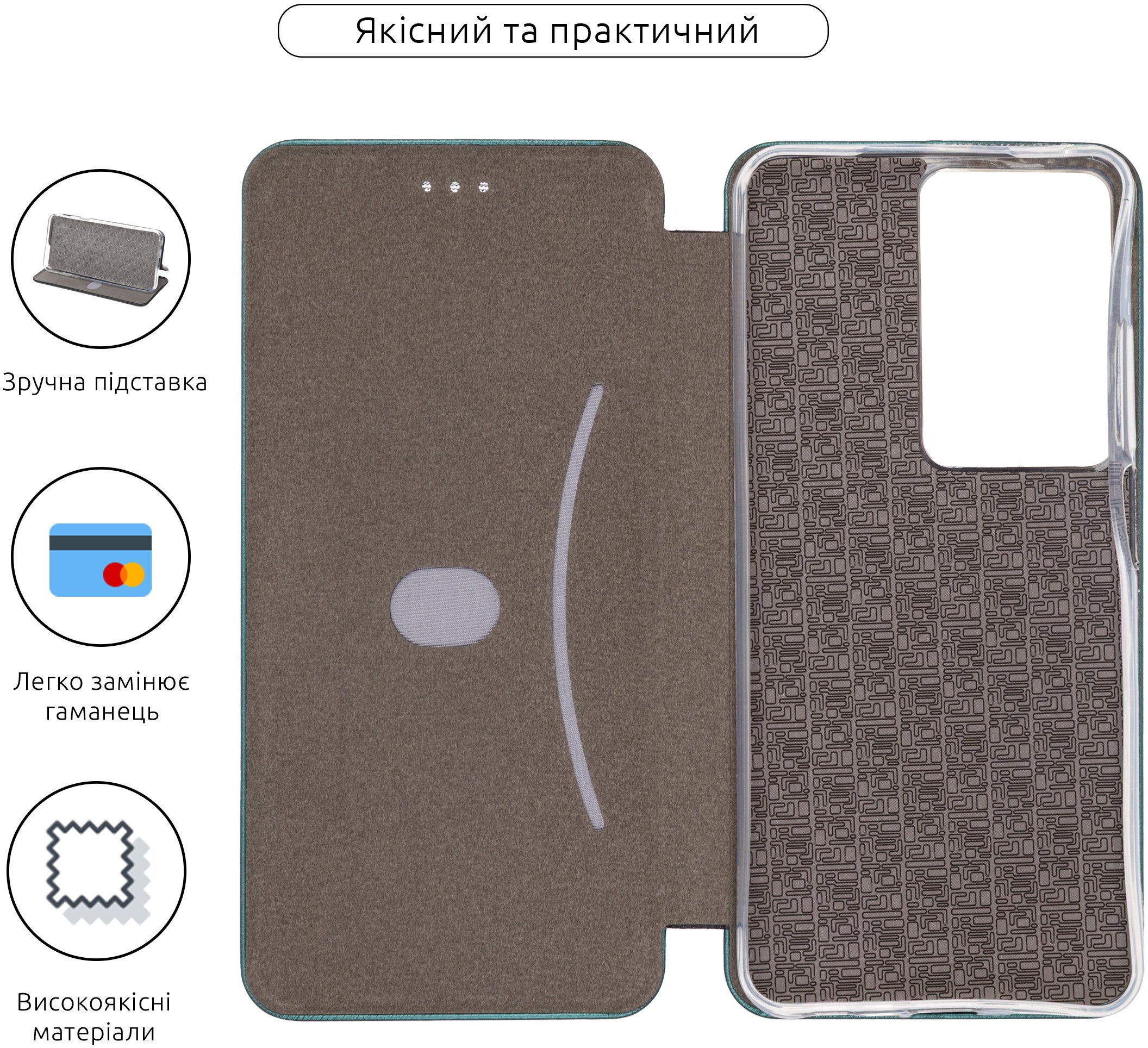 Тип чохла: КнижкаМатеріал корпусу: Поліуретан, Штучна шкіраОсновний колір: Зелений