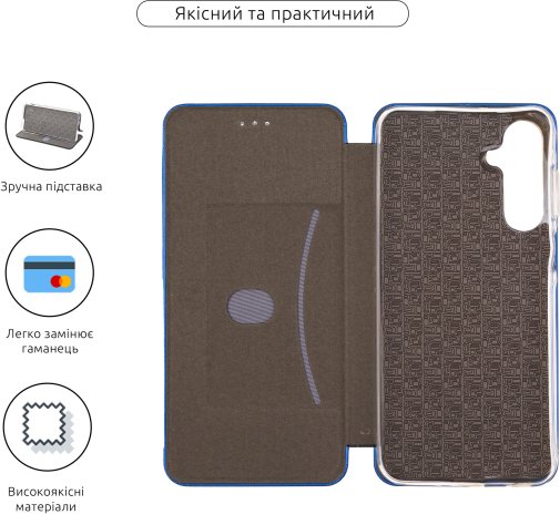 Тип чохла: КнижкаМатеріал корпусу: Силікон, Штучна шкіраОсновний колір: Синій
