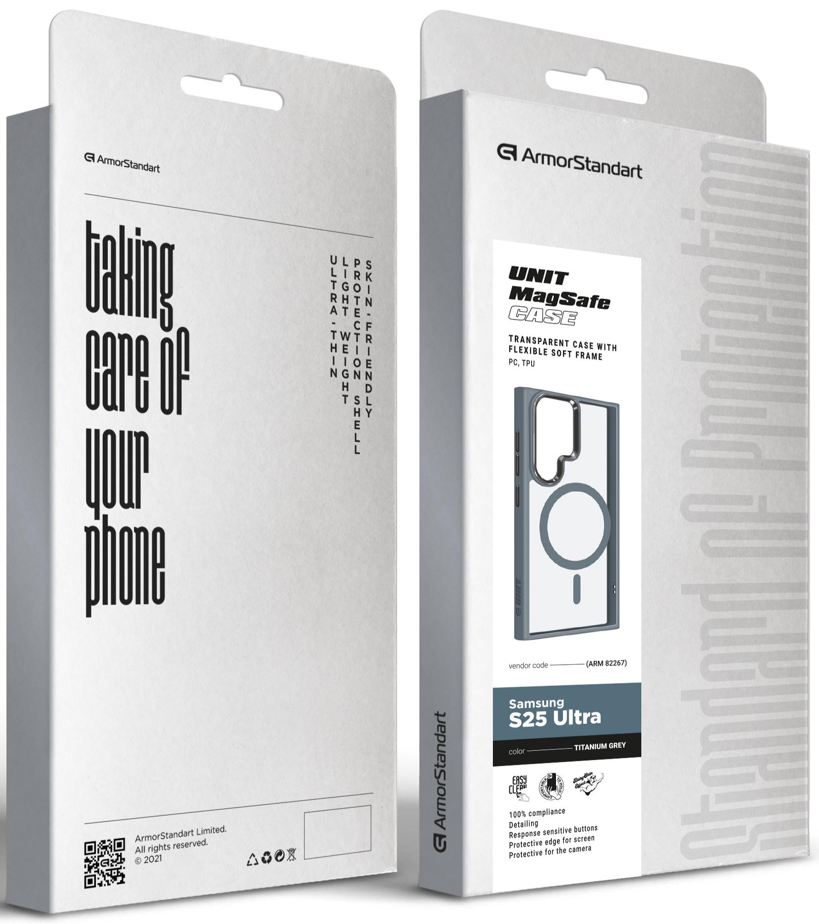 Unit MagSafe від ArmorStandart для Samsung S25 Ultra — це стильний чохол, який поєднує в собі сучасні тренди та надійний захист вашого смартфона. Рамка навколо корпусу чохла та задньої камери додає оригінальності та стилю вашому гаджету.