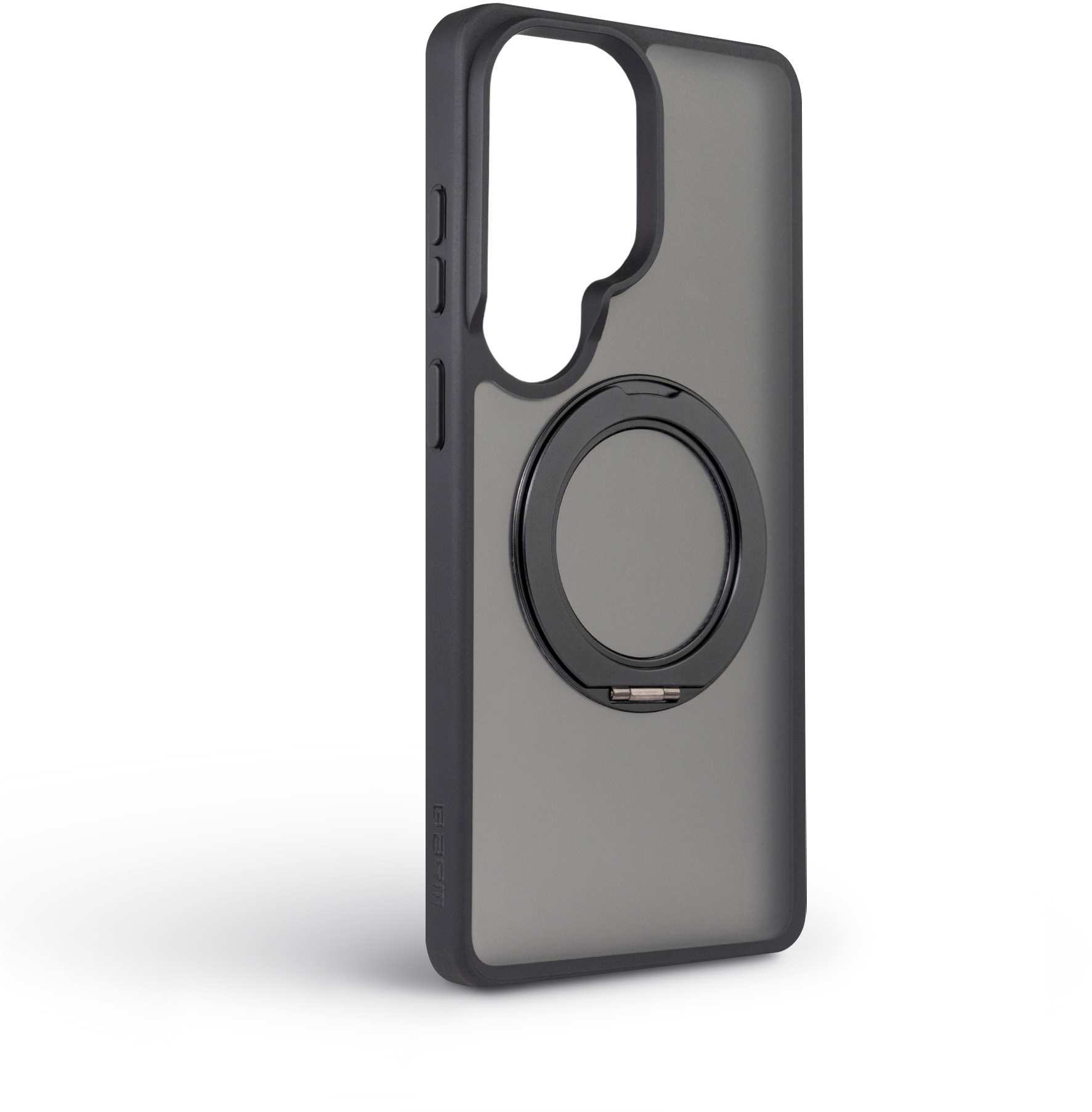 У центральній частині корпусу розташована поворотна підставка з кільцем, що обертається на 360°. Вона дозволяє використовувати смартфон у двох фіксованих положеннях: під кутом 35° для роботи з екраном і під кутом 60° для перегляду відео або відеодзвінків. Поворотний кронштейн має тонкий профіль і не створює додаткових виступів.
