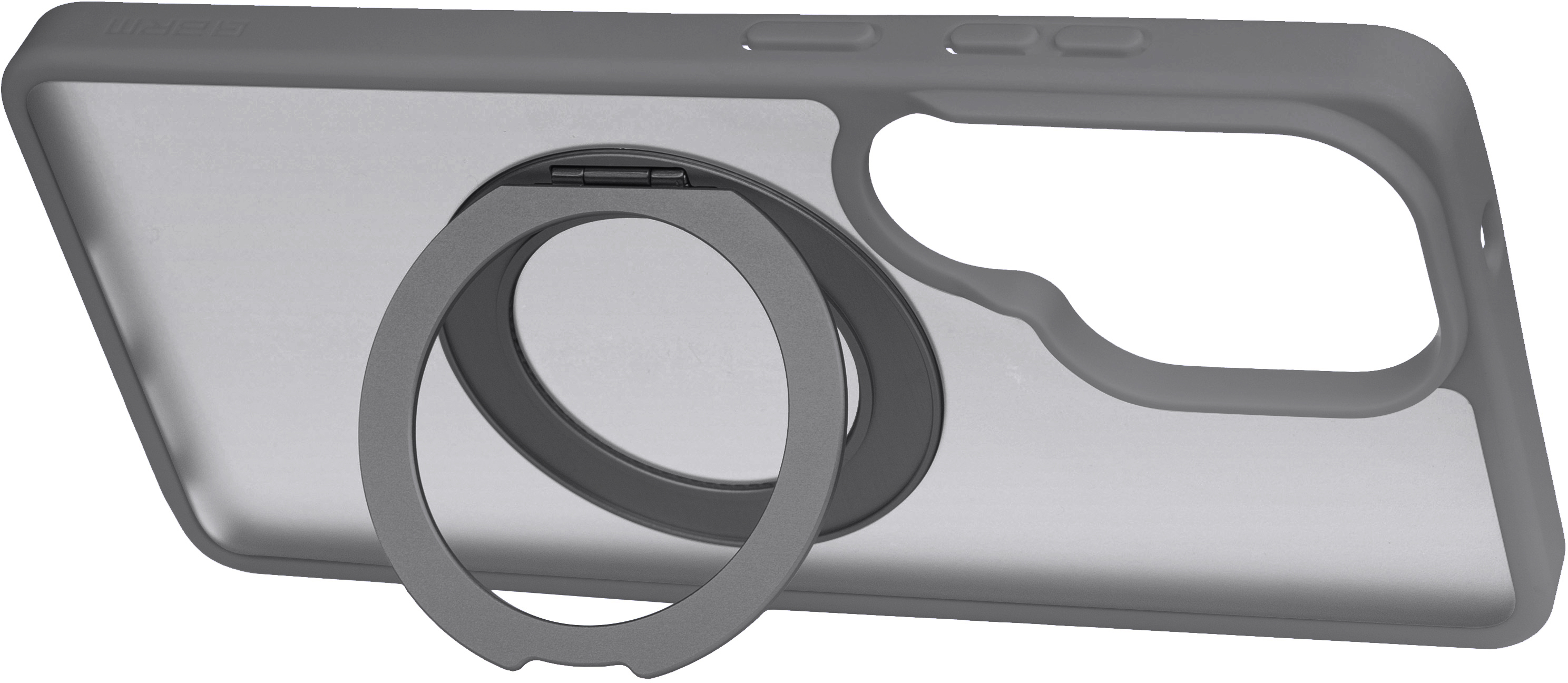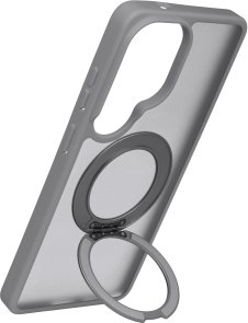 У центральній частині корпусу розташована поворотна підставка з кільцем, що обертається на 360°. Вона дозволяє використовувати смартфон у двох фіксованих положеннях: під кутом 35° для роботи з екраном і під кутом 60° для перегляду відео або відеодзвінків. Поворотний кронштейн має тонкий профіль і не створює додаткових виступів.