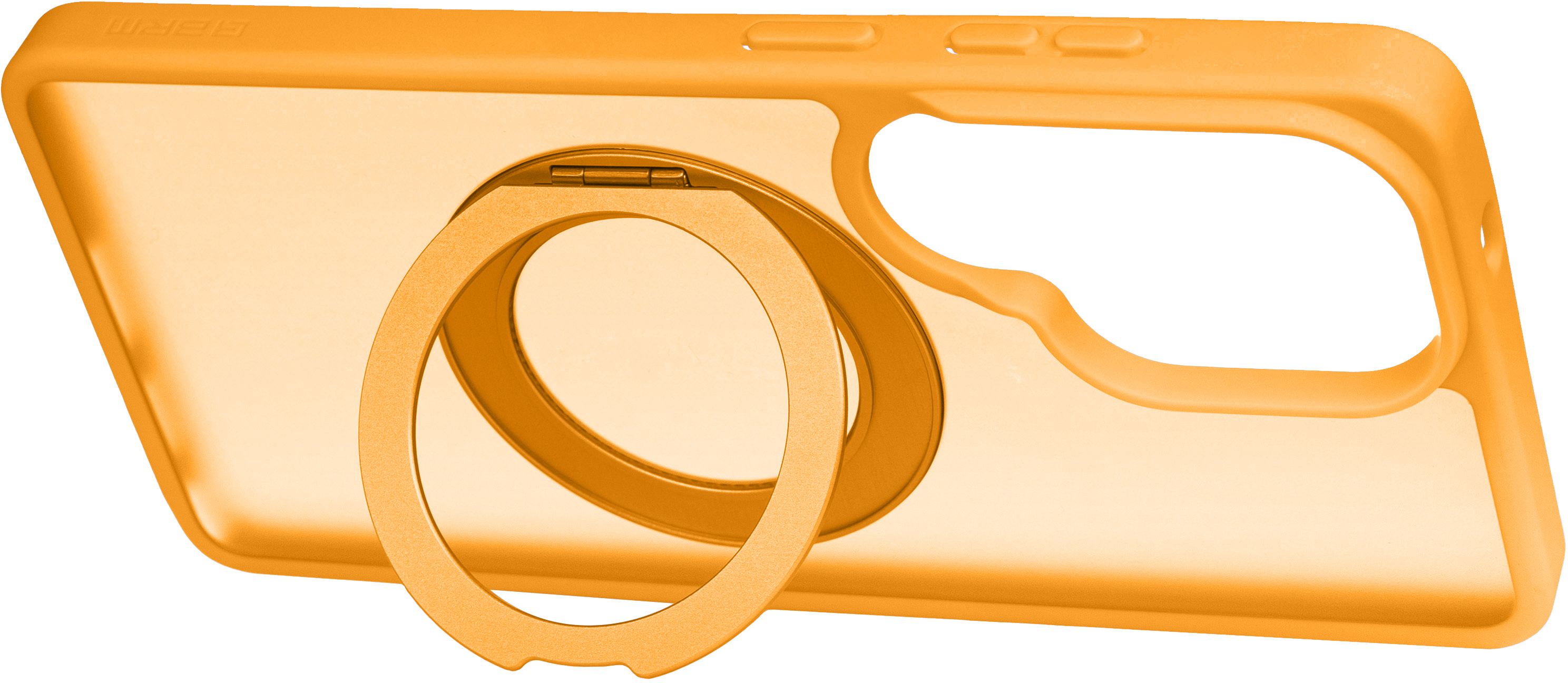 У центральній частині корпусу розташована поворотна підставка з кільцем, що обертається на 360°. Вона дозволяє використовувати смартфон у двох фіксованих положеннях: під кутом 35° для роботи з екраном і під кутом 60° для перегляду відео або відеодзвінків. Поворотний кронштейн має тонкий профіль і не створює додаткових виступів.